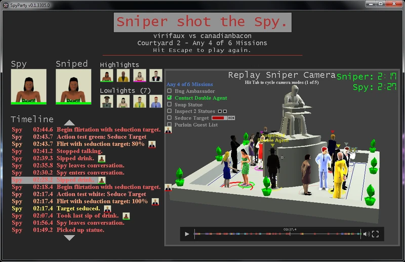 Every time a game of SpyParty is played, a replay will be automatically recorded and stored. A...
