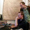 John (seated) working on SpyParty with Chris Hecker